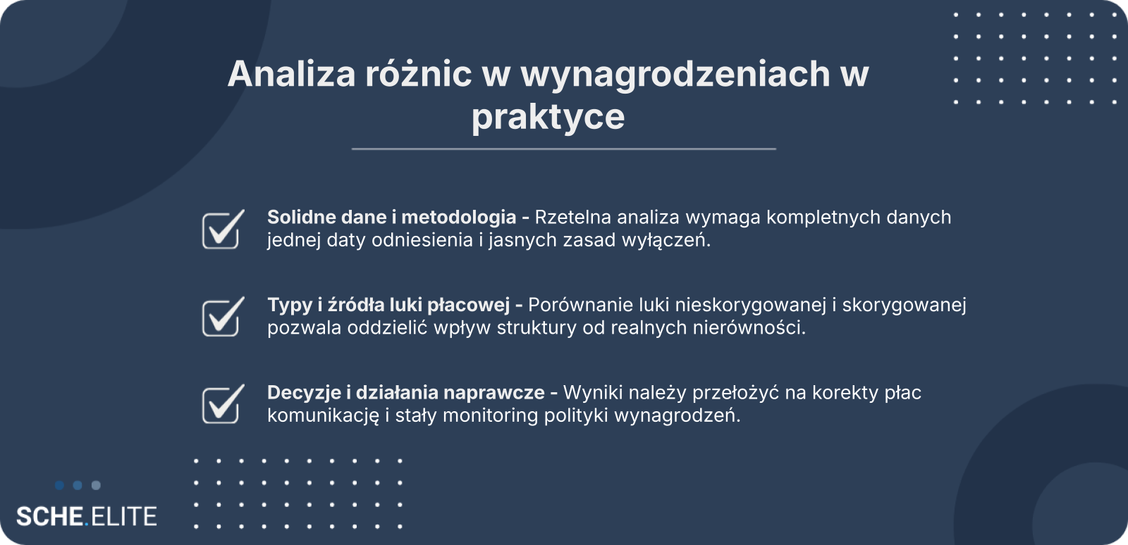 W praktyce zarządczej warto stosować oba wskaźniki równolegle. Nieskorygowana luka płacowa sygnalizuje skalę zjawiska w organizacji, natomiast podejście skorygowane wskazuje, czy problem dotyczy konkretnych grup, poziomów stanowisk albo jednostek biznesowych. Takie rozróżnienie pozwala uniknąć pochopnych decyzji i kierować działania tam, gdzie rzeczywiście występuje ryzyko nieuzasadnionych różnic.