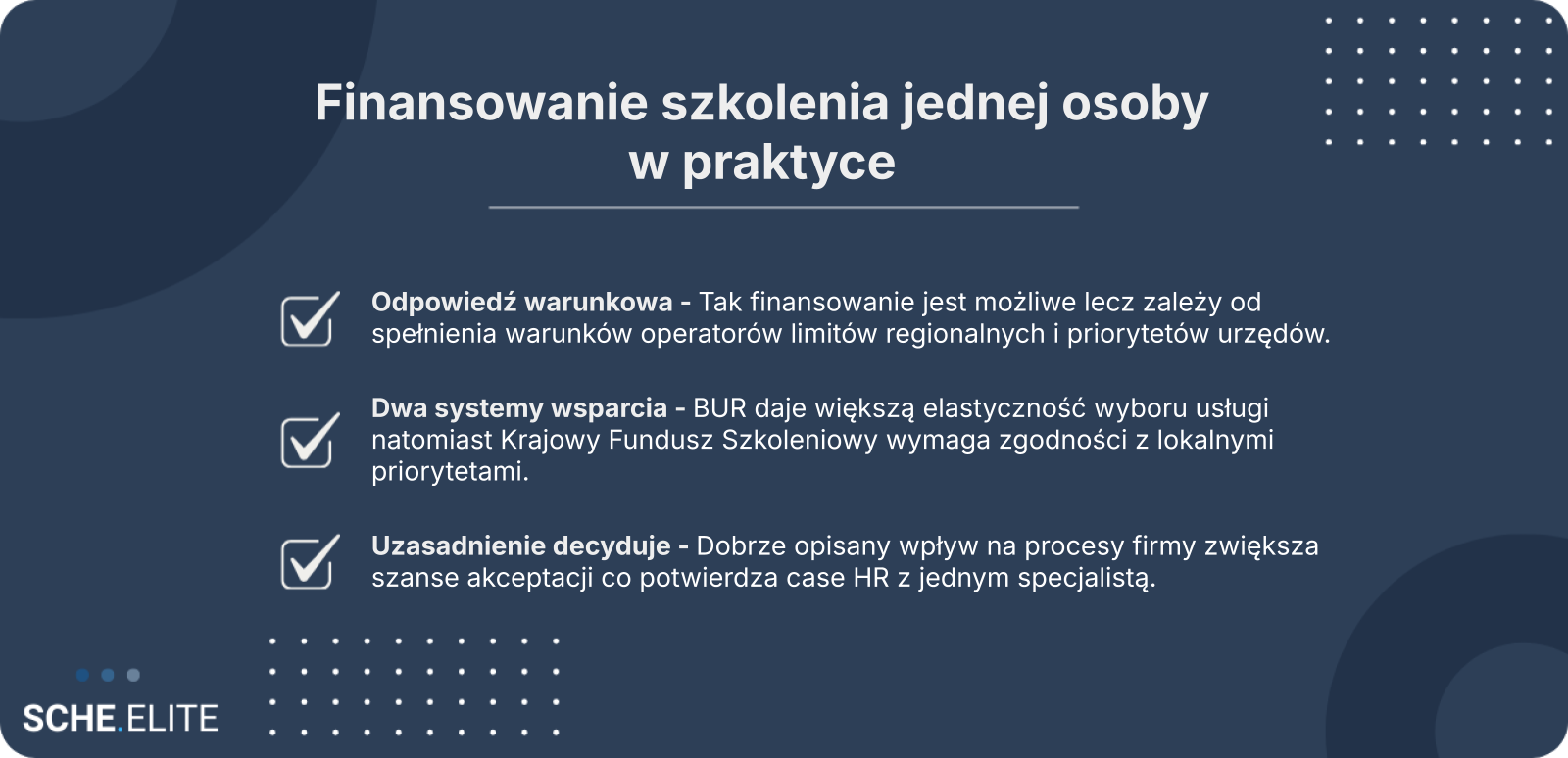 Case pokazuje, że pytanie, czy można sfinansować szkolenia tylko dla jednej osoby, nie jest teoretyczne. Odpowiedź zależy od kontekstu biznesowego, jakości argumentacji i właściwego wyboru instrumentu finansowania.