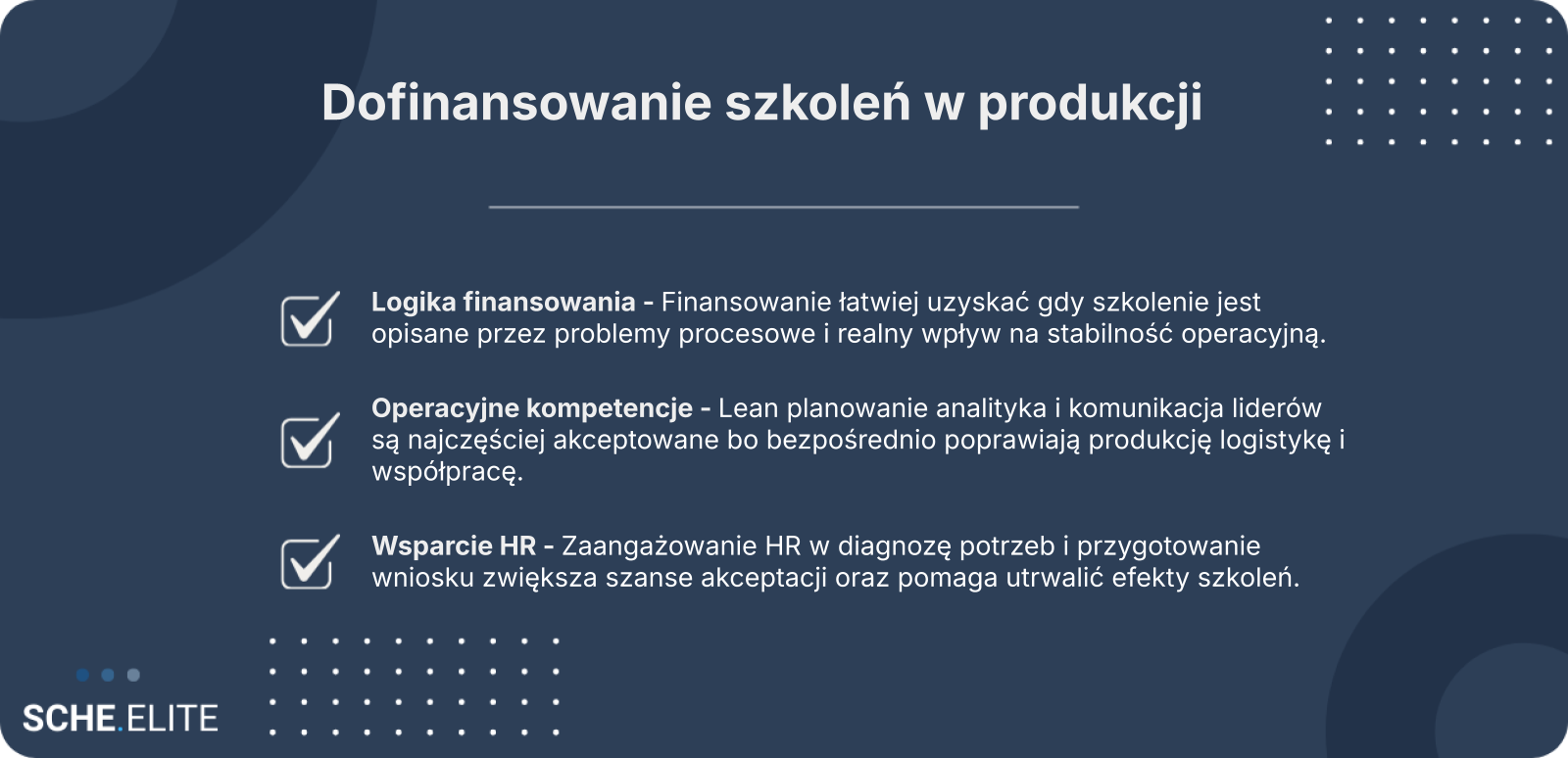 - jakie mechanizmy decydują o przyznaniu dofinansowania szkoleń w produkcji