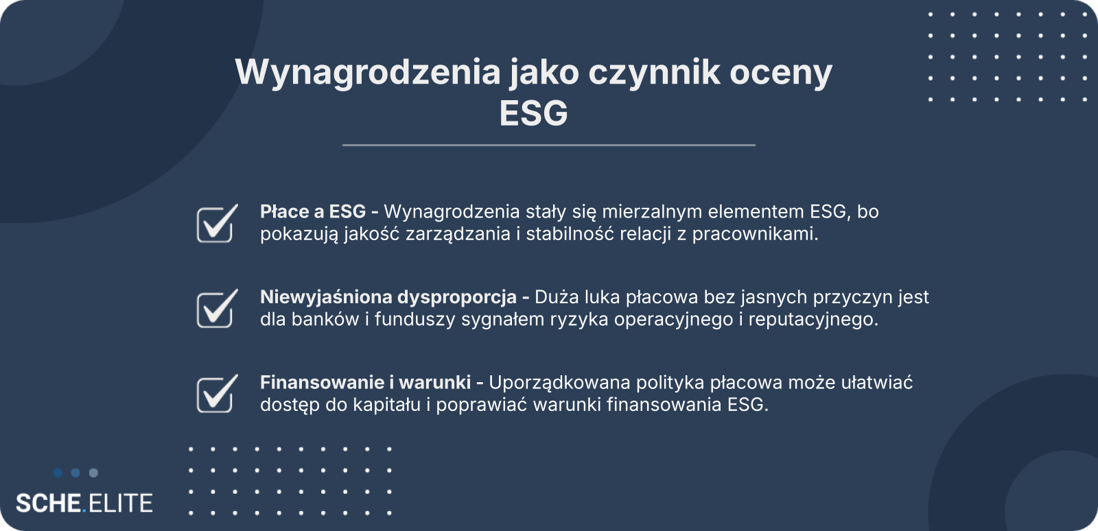 W kontekście ESG a wynagrodzenia stają się więc elementem dialogu analitycznego, a nie formalnym wymogiem. Banki rzadko podejmują decyzje wyłącznie na podstawie jednego wskaźnika, ale luka płacowa może wpłynąć na ocenę jakości zarządzania i poziom ryzyka kredytowego.