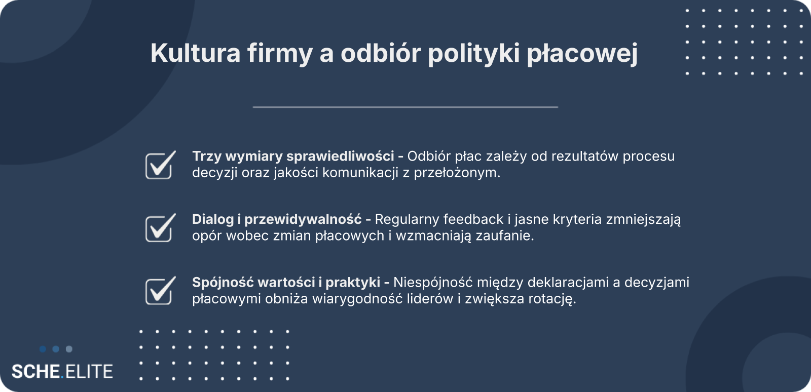 | Proceduralny | Proces podejmowania decyzji | Spójne cykle podwyżkowe, możliwość odwołania |