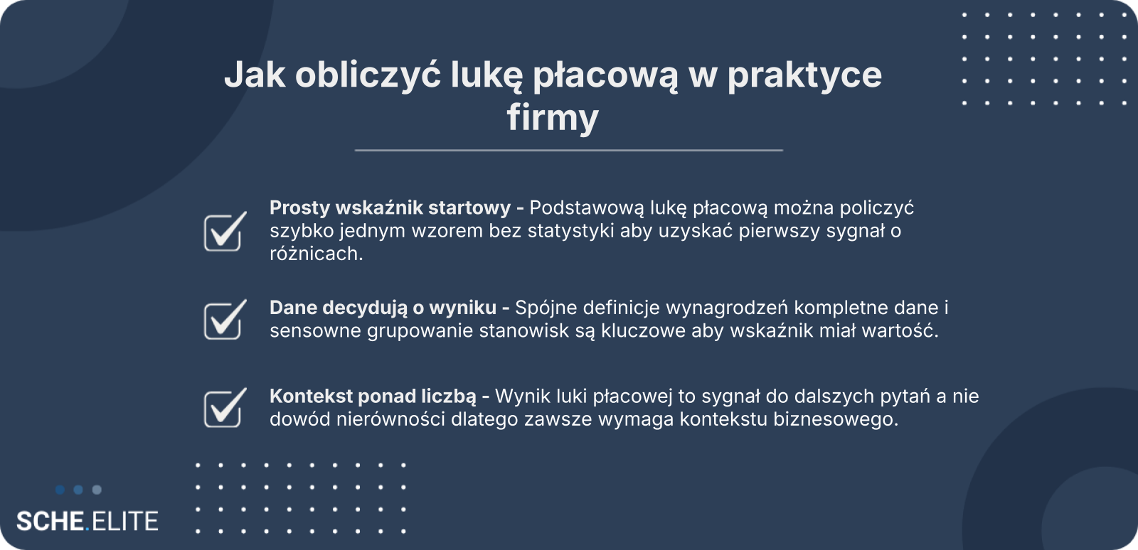 Jednocześnie sens luki płacowej polega bardziej na rozpoczęciu rozmowy niż na jej zakończeniu. Wysoki lub niski wynik sam w sobie nie wyjaśnia przyczyn. Nie mówi, czy różnice wynikają ze struktury stanowisk, stażu, rynku pracy czy z potencjalnego problemu systemowego. Dlatego warto traktować ten wskaźnik jako punkt wyjścia do dalszej analizy, a nie jako ostateczny werdykt.