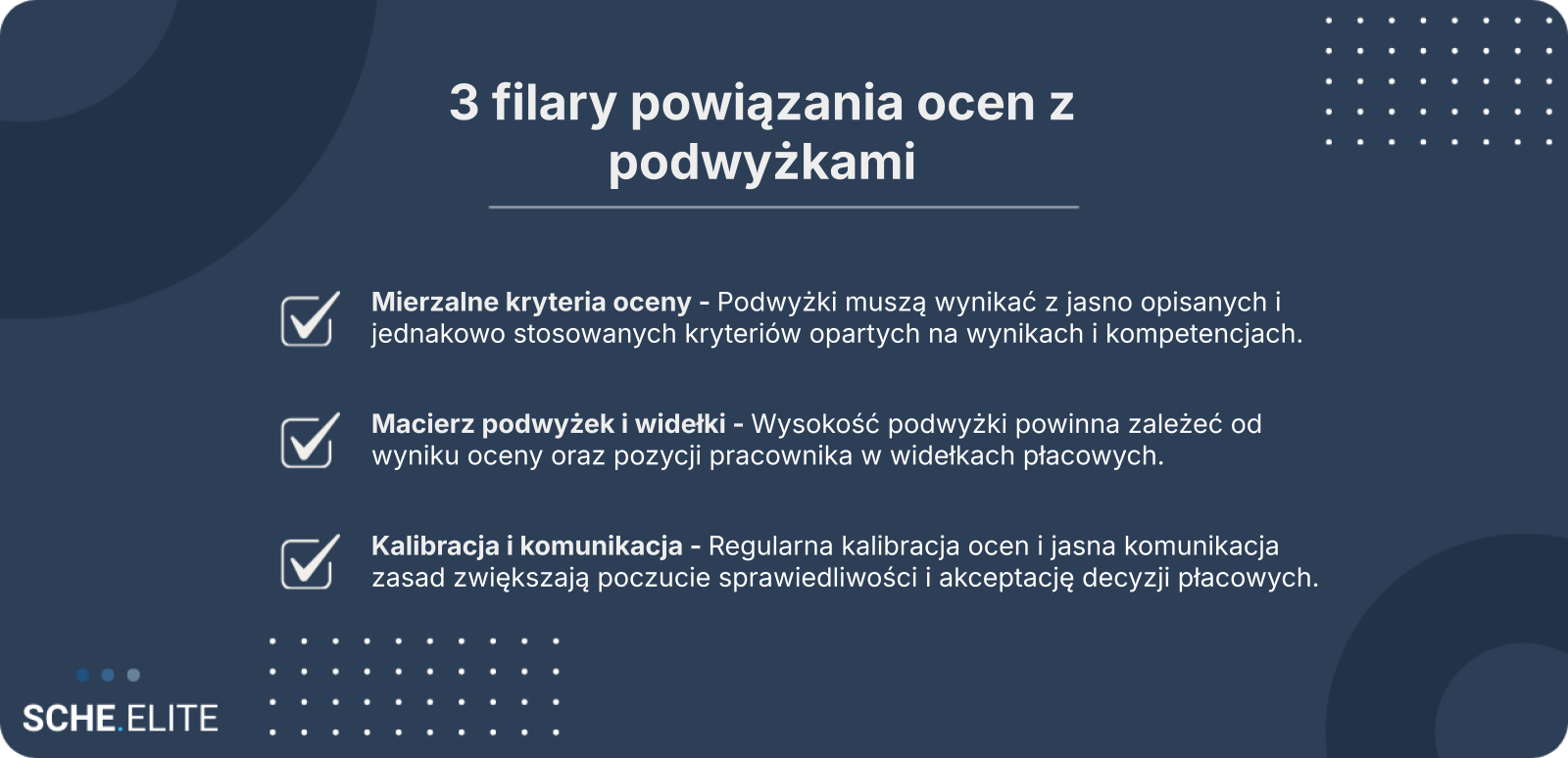 - jak przełożyć wyniki ocen na sprawiedliwy i zrozumiały mechanizm podwyżek.