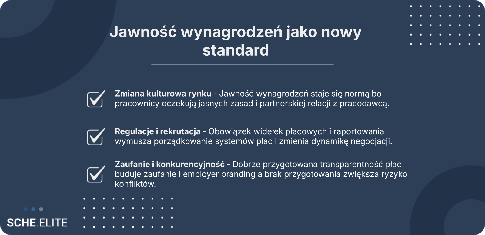 W tej części artykułu przyglądamy się temu, skąd bierze się odchodzenie od tabu oraz jak rosnąca transparentność płac wpływa na relacje między pracownikami a pracodawcami, zanim jeszcze pojawią się konkretne obowiązki prawne.