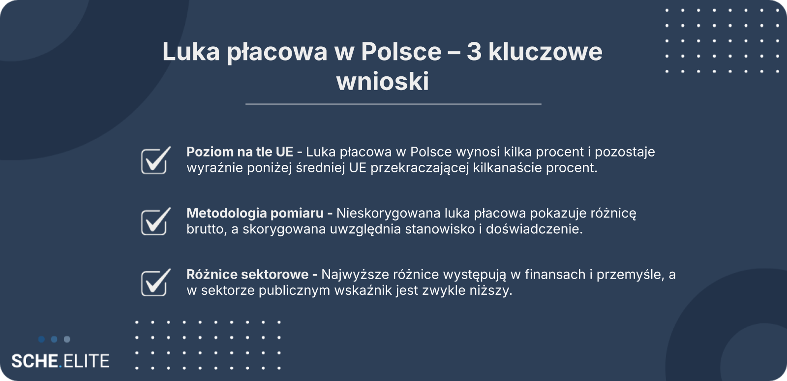 Należy jednak podkreślić, że niska wartość wskaźnika nie oznacza automatycznie pełnej równości ekonomicznej. Struktura rynku pracy w Polsce, w tym mniejsza reprezentacja kobiet w najwyżej opłacanych segmentach oraz relatywnie duży udział sektora publicznego, wpływa na końcowy wynik agregowany.