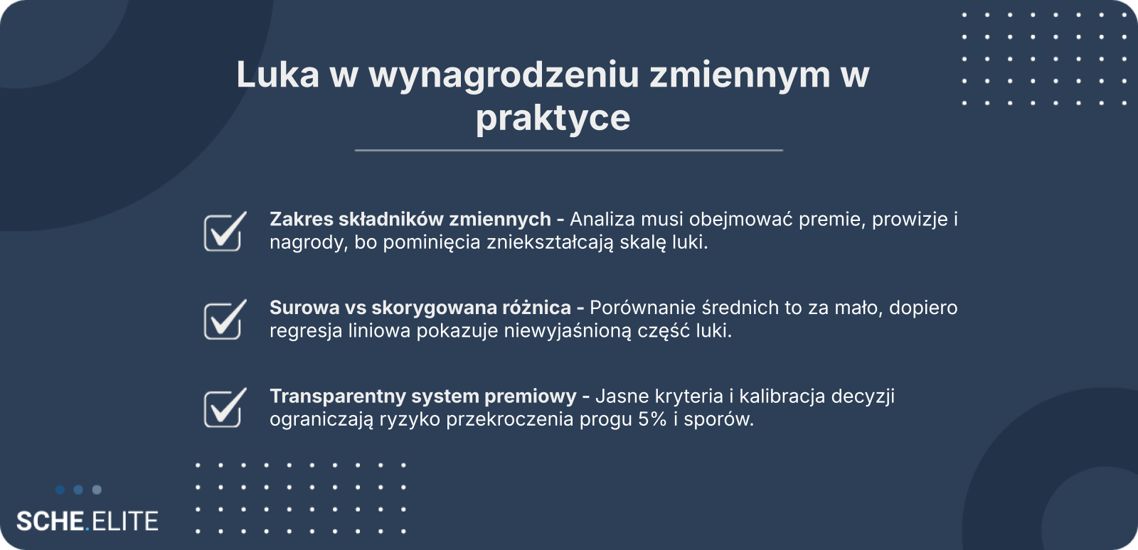 Analiza składników zmiennych bez kontroli czynników takich jak staż czy zakres obowiązków prowadzi do mylnych wniosków i pozornie wysokiej luki.