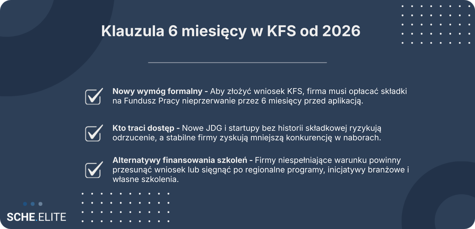 W praktyce oznacza to przesunięcie akcentu z dostępności na selektywność. Krajowy Fundusz Szkoleniowy pozostaje narzędziem wspierającym rozwój kompetencji, ale dostęp do niego jest bardziej powiązany z wcześniejszym wkładem finansowym przedsiębiorcy w system publiczny.