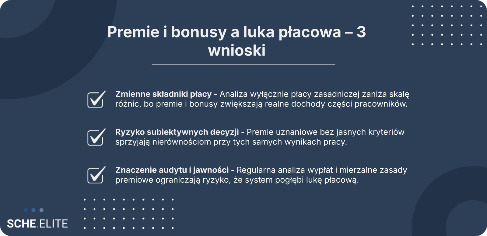 Kluczowe jest wprowadzenie transparentnych i mierzalnych kryteriów przyznawania premii oraz regularna analiza danych w podziale na płeć i stanowiska. Audyt obejmujący zarówno płacę zasadniczą, jak i wszystkie zmienne składniki pozwala szybko wykryć powtarzalne różnice i skorygować zasady przed ich utrwaleniem.