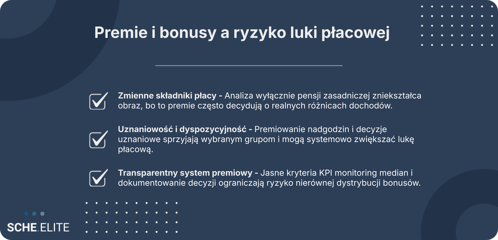 Z perspektywy HR i compliance istotne jest spojrzenie na wynagrodzenie jako całość. Analizując lukę płacową wyłącznie przez pryzmat pensji zasadniczej, organizacja może nie dostrzec systemowych różnic wynikających z dostępu do premii, skali realizowanych celów czy sposobu ich przyznawania. Składniki zmienne nie są neutralnym dodatkiem – realnie kształtują strukturę dochodów w firmie.