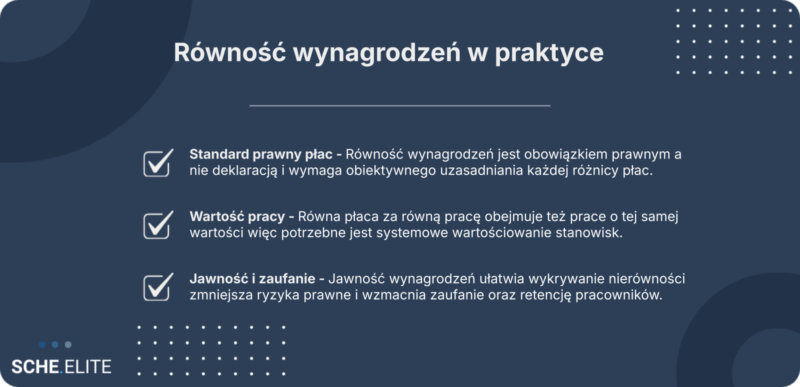 Podkreślenie, że równość płac dotyczy wartości pracy, a nie wyłącznie identycznych stanowisk, co bywa najczęstszym nieporozumieniem.
