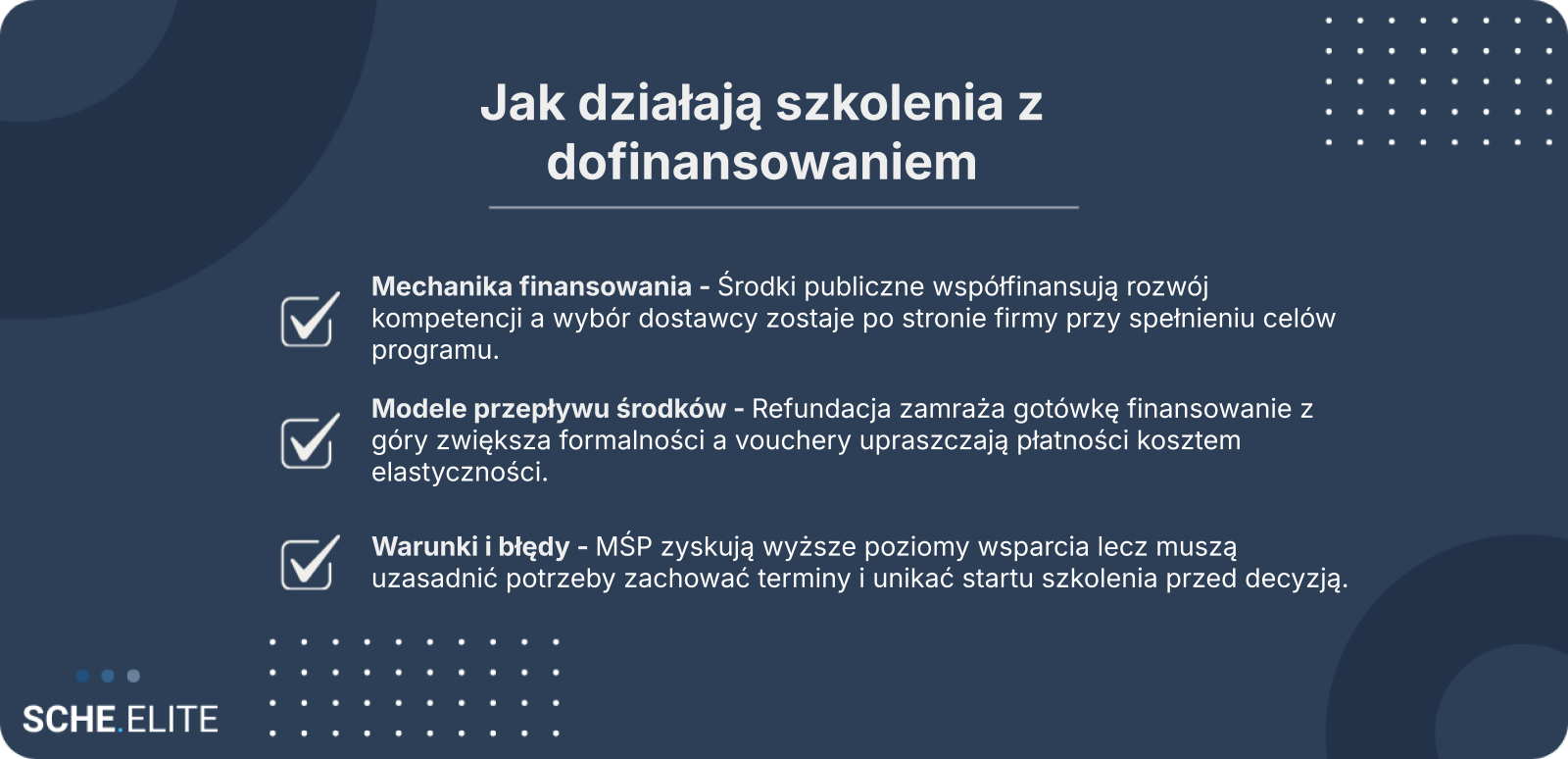 Dofinansowanie szkoleń dla firm w tej formule sprawdza się najlepiej tam, gdzie możliwości finansowe są ograniczone, ale firma jest gotowa na bardziej sformalizowany proces.