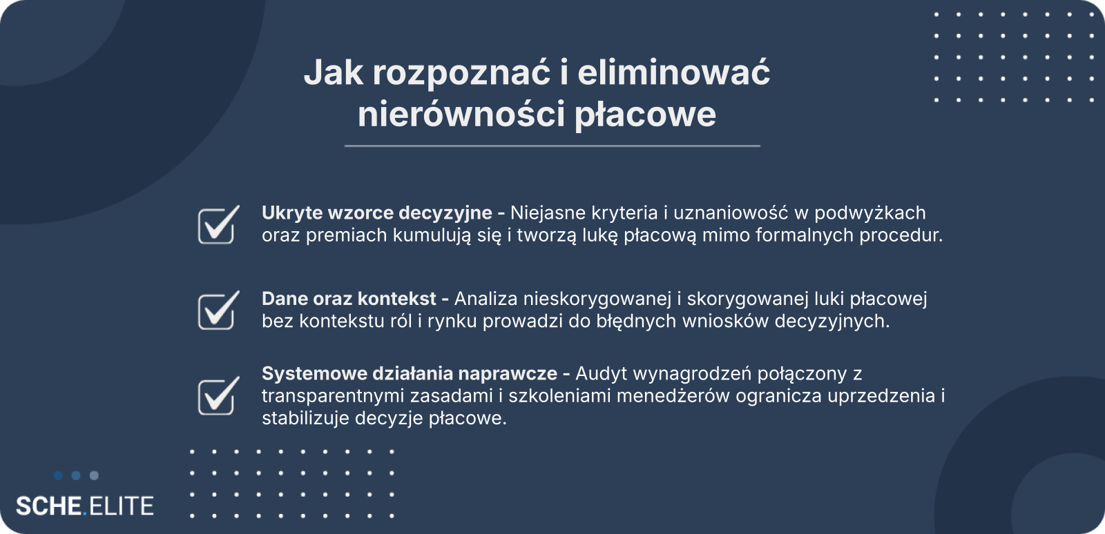 Eliminowanie uprzedzeń płciowych w wynagrodzeniach nie polega wyłącznie na korekcie pojedynczych różnic. Wymaga ono zaprojektowania systemu, który ogranicza uznaniowość i wzmacnia spójność decyzji w długim okresie. Organizacje, które traktują ten proces strategicznie, łączą wyniki audytu z działaniami proceduralnymi i edukacyjnymi.