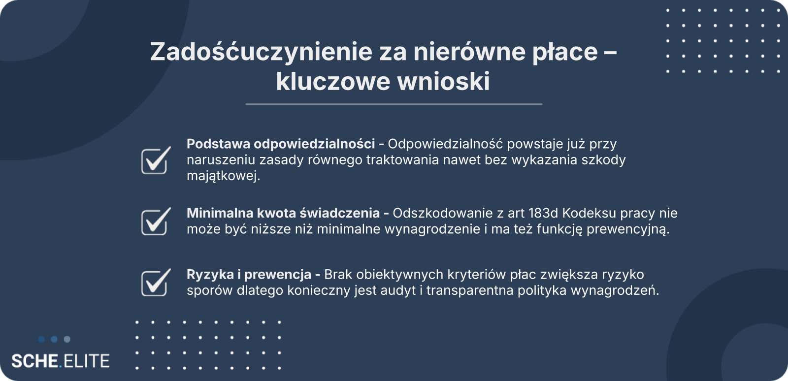 Odpowiedzialność oparta na art. 183d Kodeksu pracy nie wymaga udowodnienia winy w klasycznym znaczeniu. Wystarczające jest stwierdzenie naruszenia zasady równego traktowania. Z perspektywy organizacji oznacza to konieczność dokumentowania kryteriów wynagradzania oraz transparentnego uzasadniania decyzji płacowych. Brak spójnej polityki może znacząco utrudnić obronę w postępowaniu sądowym.