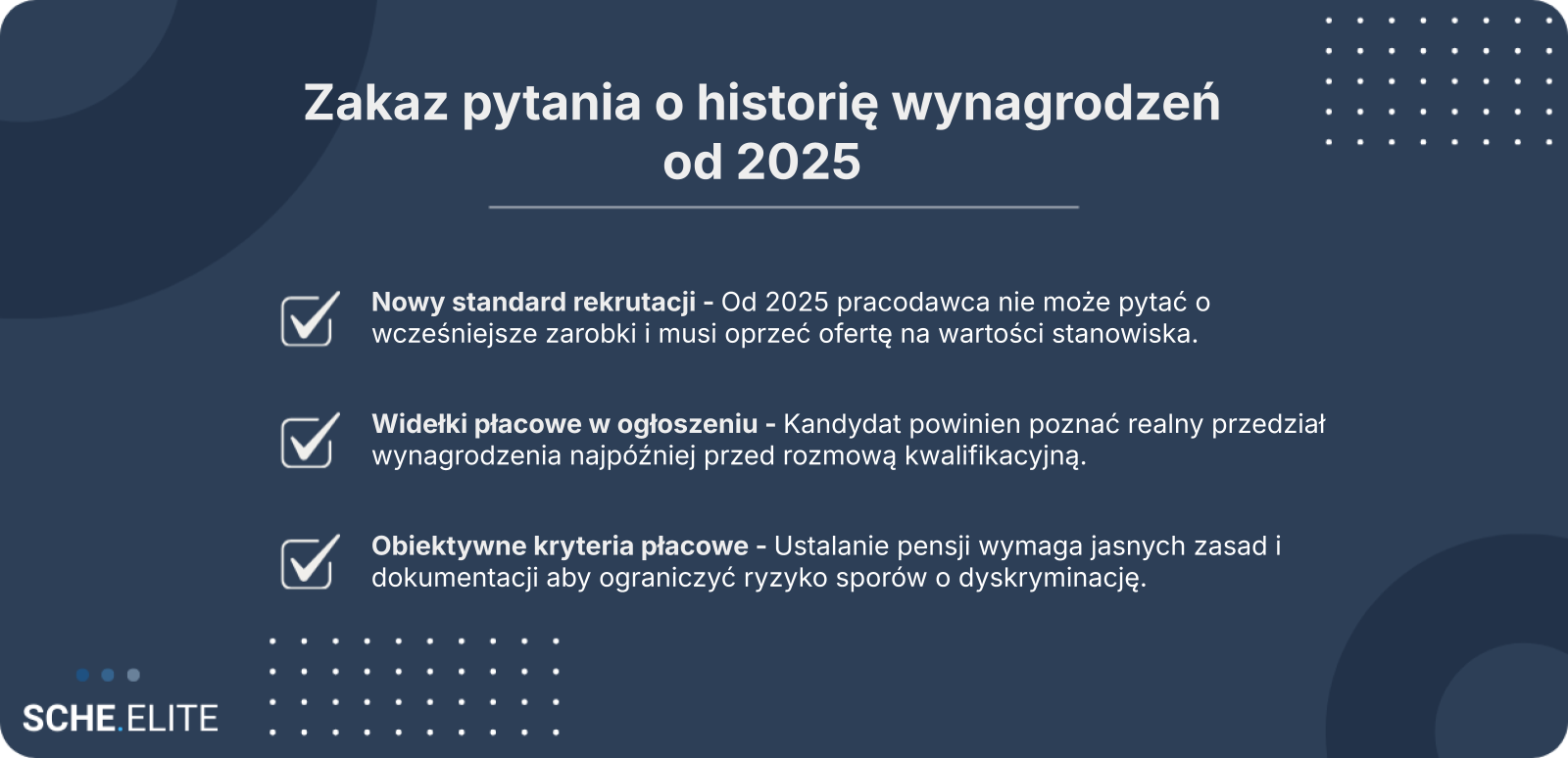 Dla wielu firm będzie to wymagało zmiany kultury rekrutacyjnej. Dotychczas pytanie o wcześniejsze zarobki pozwalało szybko „zmapować” oczekiwania kandydata. Od 2025 roku taki skrót myślowy przestaje być dopuszczalny jako standardowa praktyka.